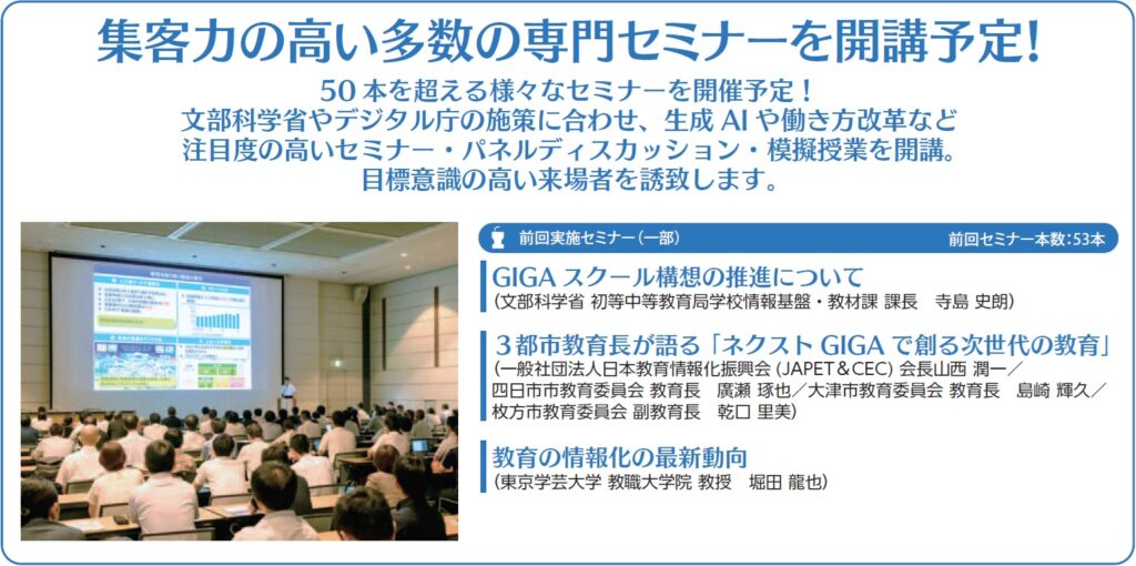 NEXT GIGAの着実な推進、AI等の新情報技術の教育利用が進む中、従来にもまして多くの先生や教育関係者の参加が期待されています。これらの教育関係者の期待に応えるべく、関連企業・団体の皆さんには、是非とも出